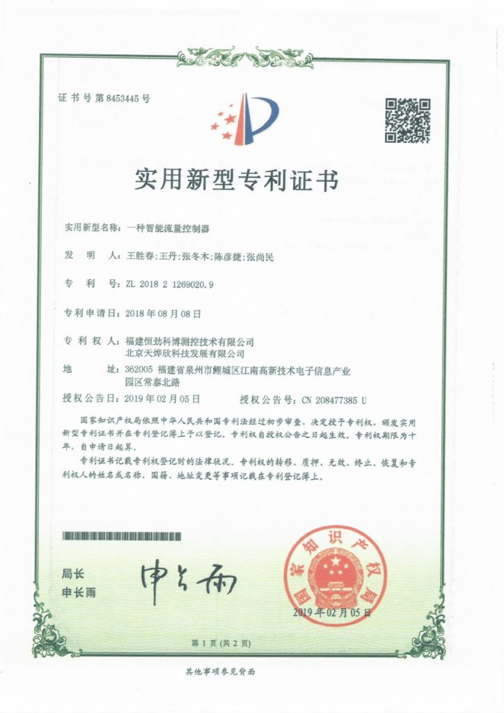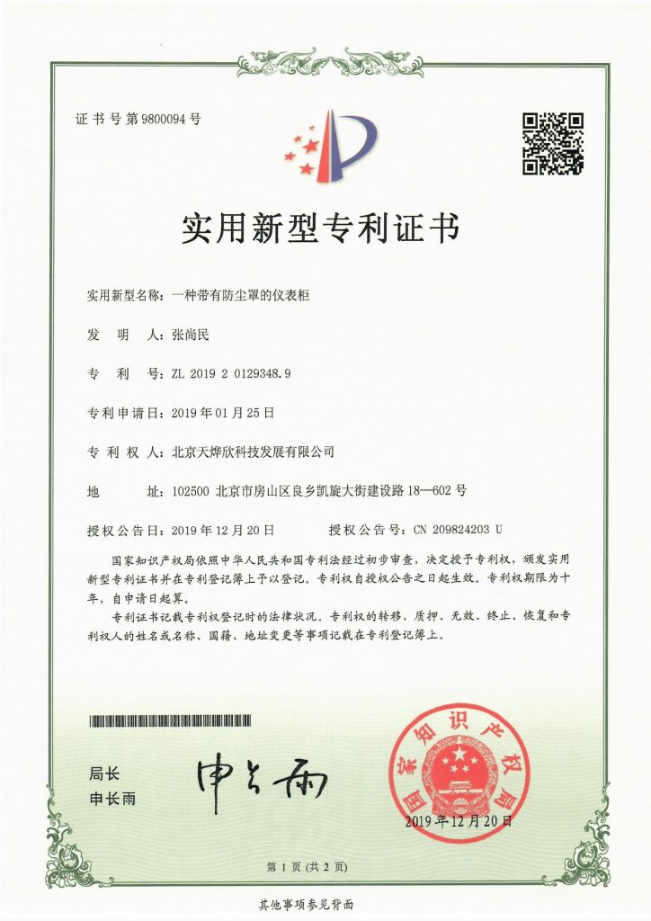 专利证书 20余年的产品选型、技术支持、以及解决方案制定、落实工作使北京天烨欣公司沉淀了扎实的技术实力。公司拥有多项国家级技术专利,在过程控制领域一直保持着与时俱进的先进技术品质。 仪表柜专利 智能流量控制器专利 液位感应装置专利 散热延长导管专利 反渗透取样箱专利 蓝牙遥控破胎器专利 阀门控制箱控制装置专利